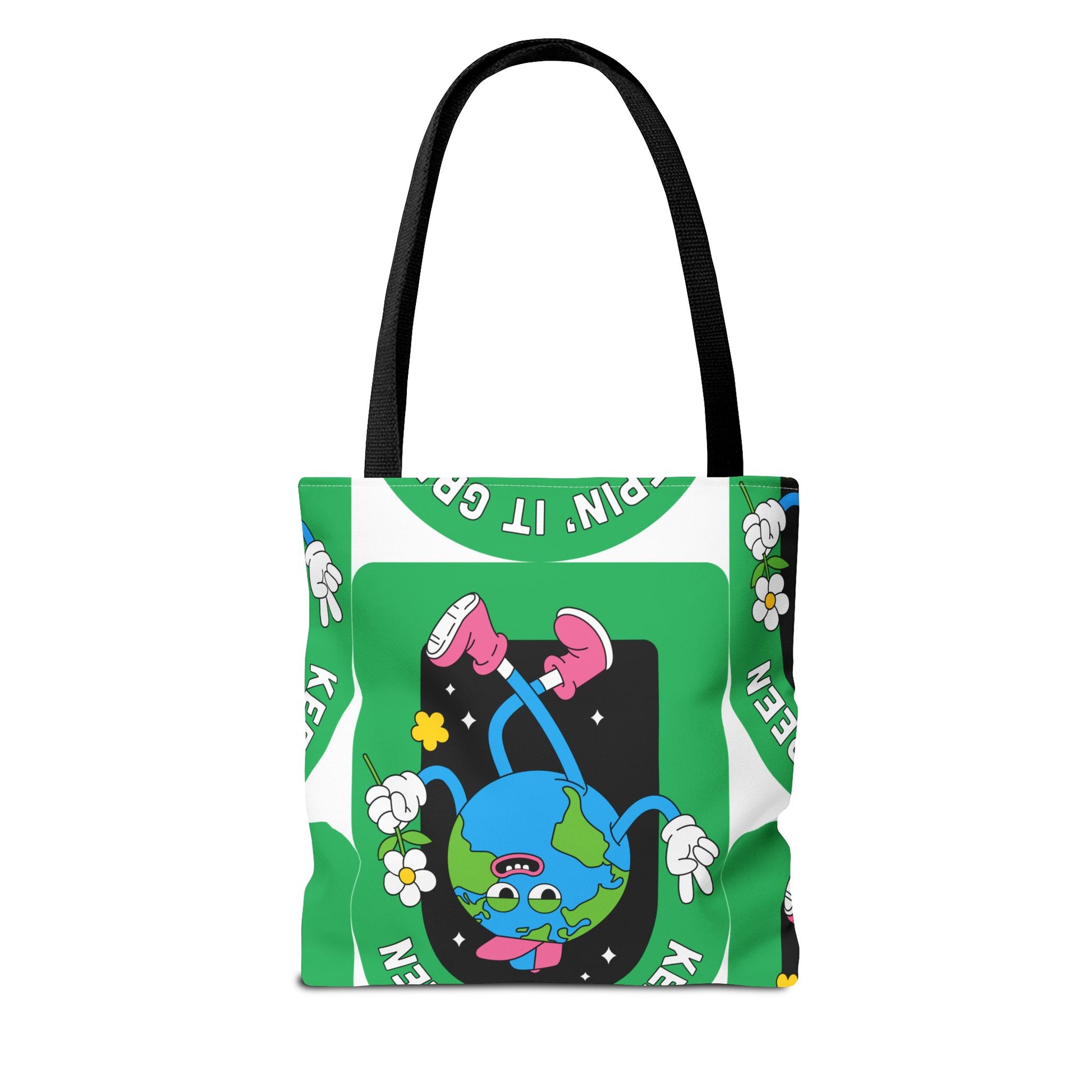 Elevate your style with this vibrant Tote Bag! Made from 100% polyester, it's not just eye-catching, but also super durable and practical for daily use. With whimsical green designs and cheerful graphics, this bag radiates positivity and a commitment to the planet. Perfect for casual outings, grocery runs, or sunny days at the park, it fits seamlessly into the lifestyle of eco-conscious individuals and anyone who loves fun, colorful accessories. It’s an ideal gift for Earth Day, birthdays, or just because! Add a touch of playfulness to your wardrobe and make a statement wherever you go.